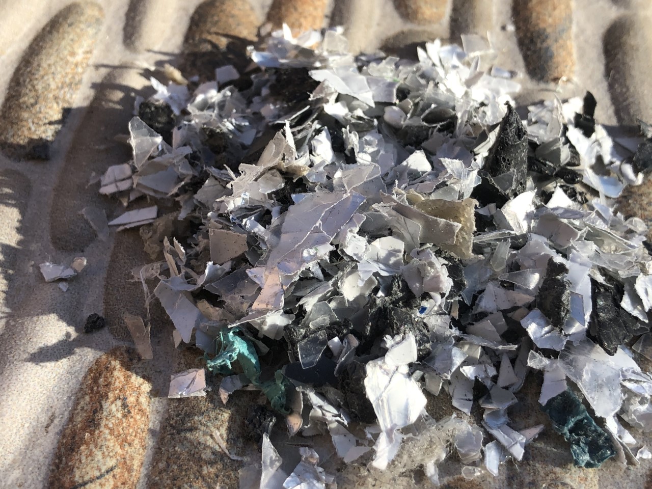 O plástico (proveniente do espaço marítimo e terrestre) reciclado triturado é uma das nossas matérias-primas essências, bem como o cimento de calcário branco.